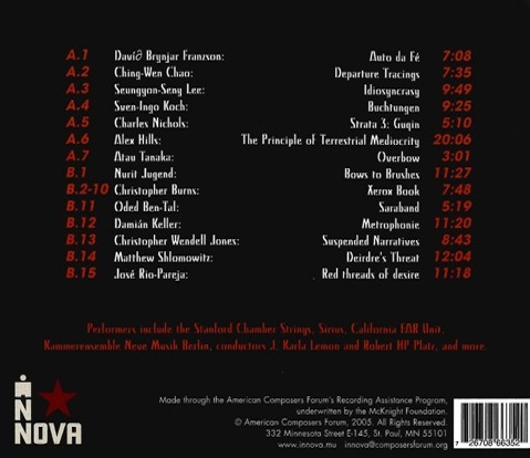 Chamber music works, including Carácter; Entheos; Marginal; Red threads of desire; & Piano Trio "La rivière sans socle".